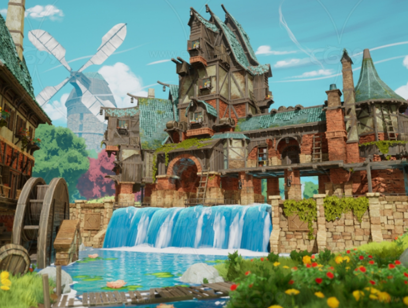UE4/UE5 小镇 村庄 风车村 塞尔达风格场景 UE4 4.26-5.10版本,路径打通 文件完整